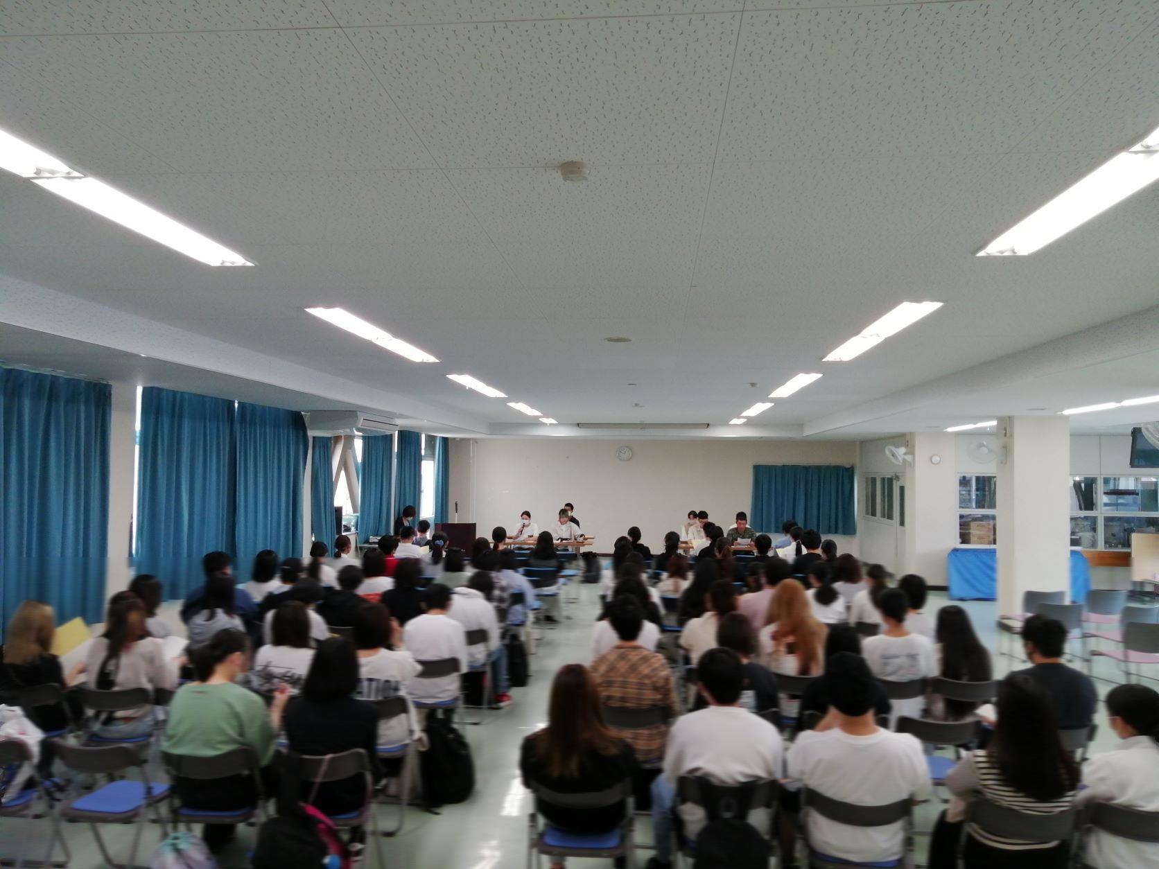 生徒総会の参加者は、生徒会役員を含め、72名の参加者でした。総会では、昨年度の行事報告や会計報告の後、本年度の行事計画や予算案についての説明、生徒会役員の選出などが行われ、いずれも全会一致で承認されました。 その後、生徒の皆さんからの学校への要望ということで、生徒ホールの施設環境面や、授業やリポートの学習面についてなど様々な意見が提出されました。これらの要望が、実現する、しないに関わらず、本総会は、皆さんの学校への「思い」を知ることができるよい機会となっていますので、今後も、こういった場では、積極的に意見を発信していきましょう。