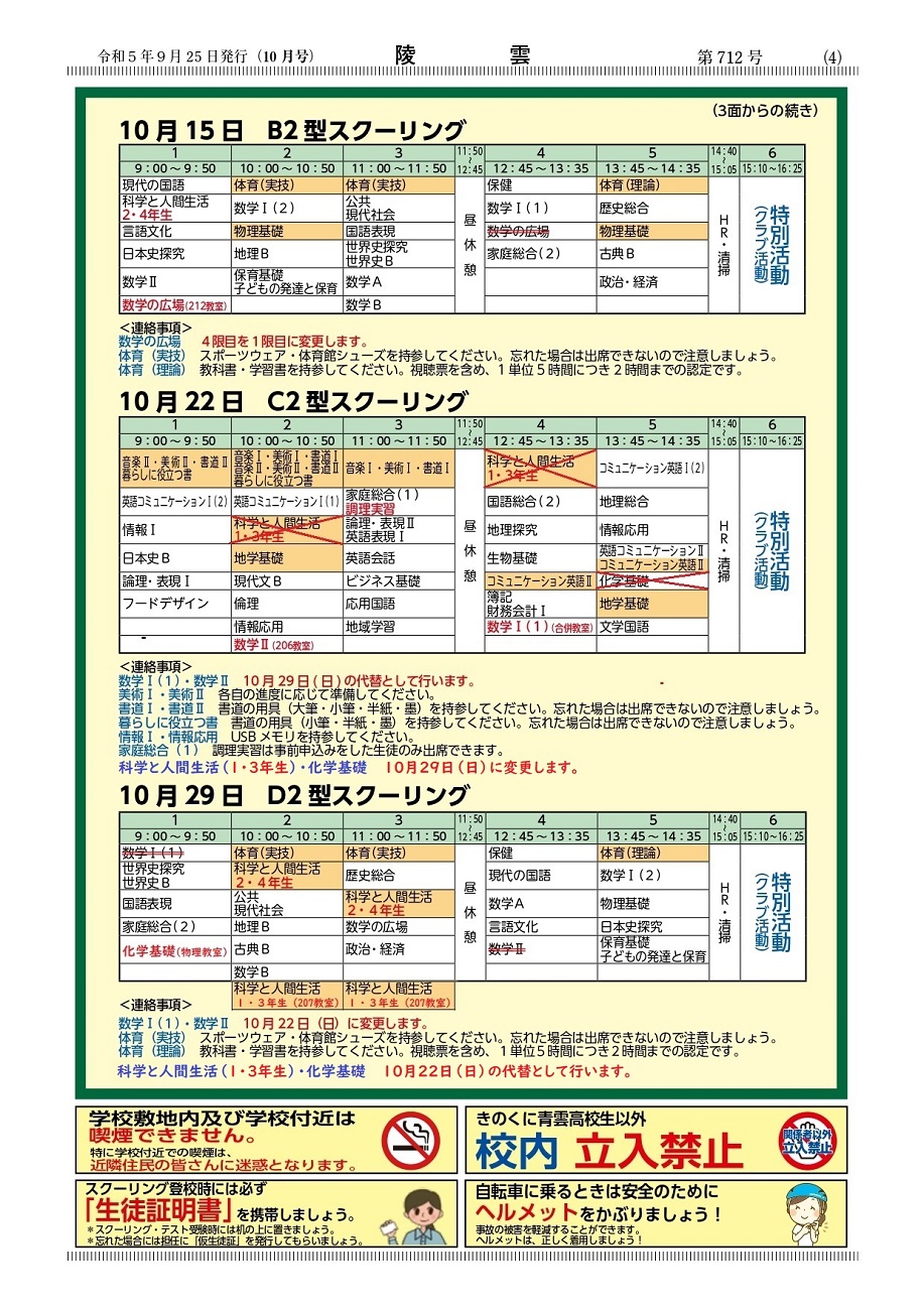 詳細は、下記「日程変更のお知らせ(校報バージョン)」を確認して下さい。