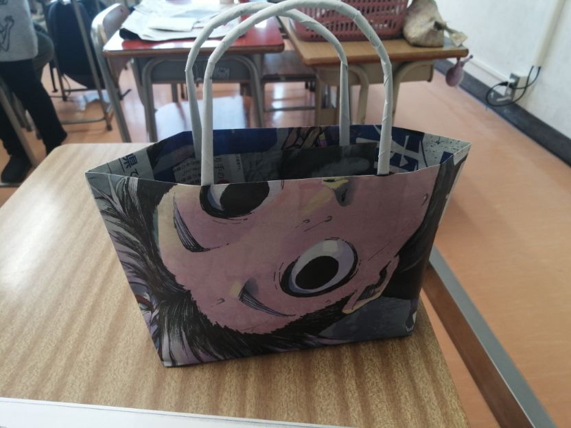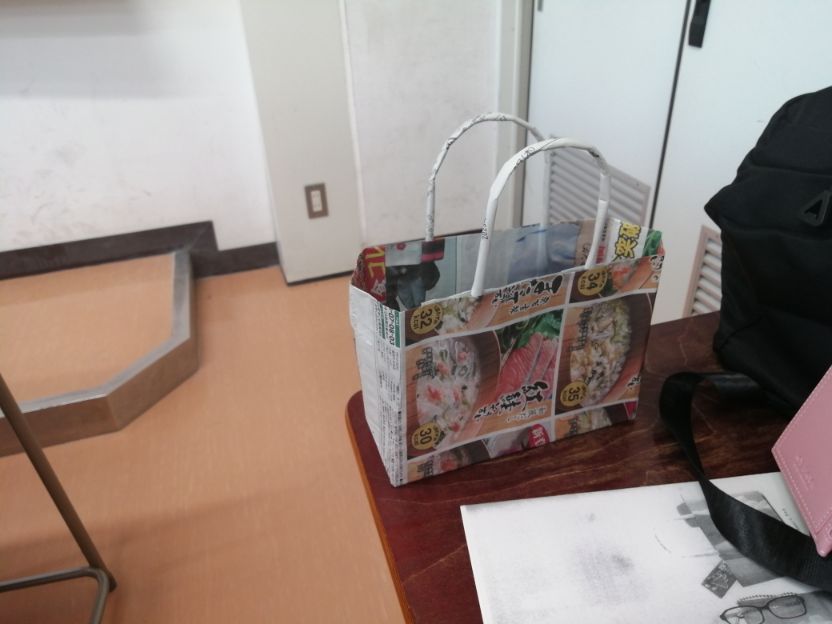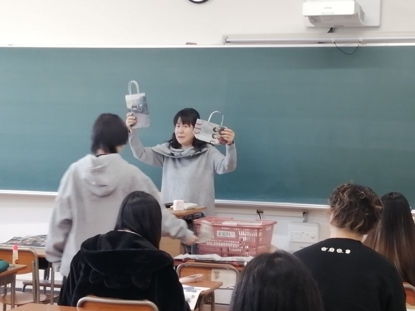 本日はA1型スクーリングで、1限目~5限目までは、各教科のスクーリングが実施され、6限目は総合的な探究の時間でした。その中の「エコ実習」では、新聞紙を使ってオリジナルエコバッグを作成し、新聞紙の再利用の方法について学習しました。