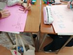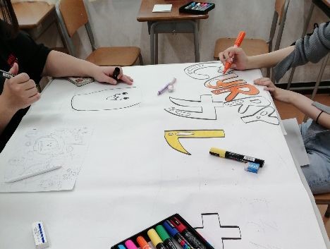 午後からは、文化祭の準備で、それぞれの学年が模擬店のポスター作成などに取り組みました。