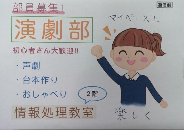 朝夕涼しくなりましたが、日中はまだ暑さが残っており、特に南側の教室は依然として暑いように思います。本日はD2型スクーリングで、1限目~5限目までは、各教科のスクーリングが実施され、6限目はクラブ活動が行われました。近通体や文化祭に向けて取り組むクラブや、部員募集のためのチラシを作成するクラブなど、各クラブそれぞれ熱心に活動していました。また、文化祭に向け、生徒会の活動も活発化してきています。本番までもう少しです。がんばっていきましょう。