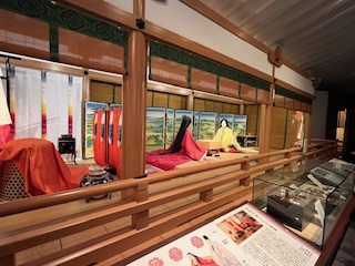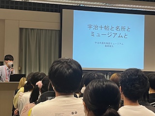現地では、まず、「源氏物語ミュージアム」を見学しました。皆さんが真剣に講義を受けている様子が印象的でした。映像の鑑賞後、展示ゾーンで興味深く見学していましたね。