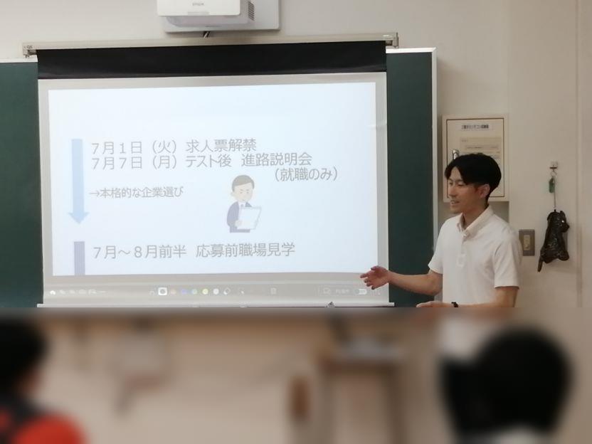 本日、昼間部・夜間部ともに中間考査の最終日を迎えました。考査終了後には、卒業予定者を対象とした進路説明会が実施されました。 説明会では、進学および就職に向けた心構えや、今後のスケジュールについての説明が行われました。生徒たちは、進路指導部長の熱意あふれる言葉に真剣な面持ちで耳を傾けていました。