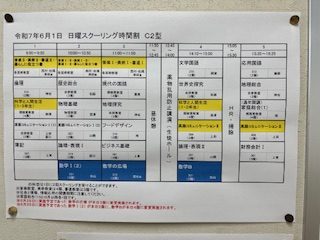 本日はC2型スクーリングでした。1限から5限まで、さまざまな科目のスクーリングが行われました。