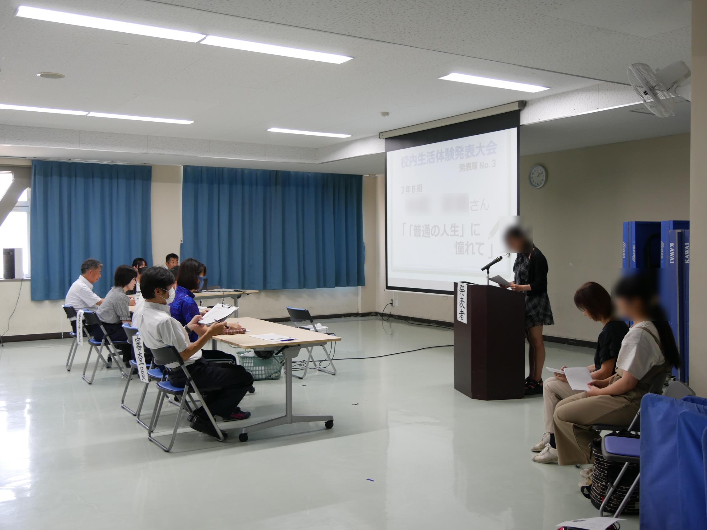 同じ学校に通う仲間に向けて自分の経験や思いを発表することで、これまでの自分を振り返り、見つめ直すことができる貴重な機会となりました。