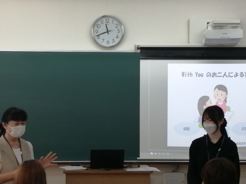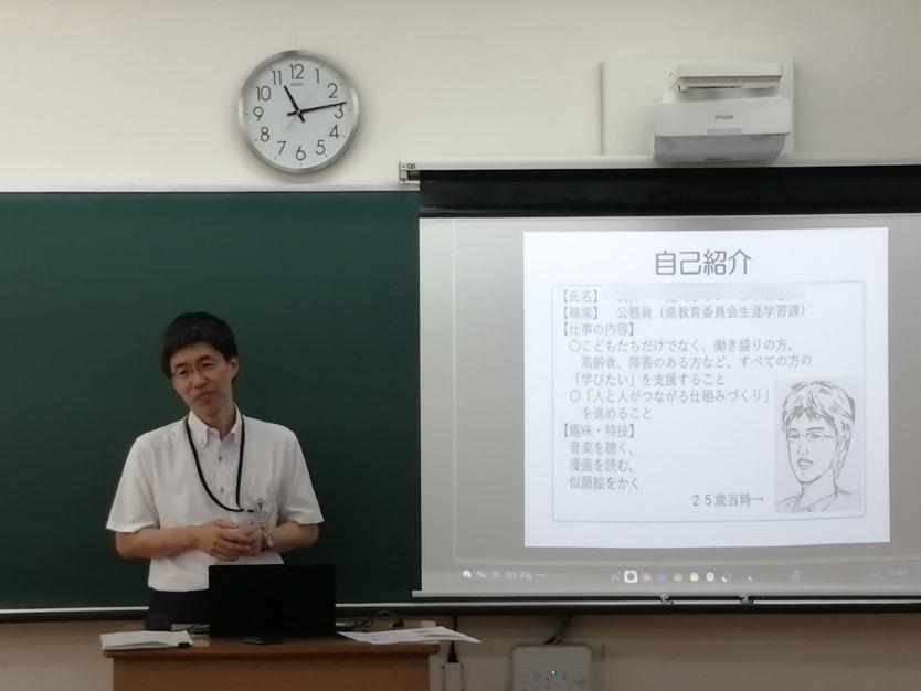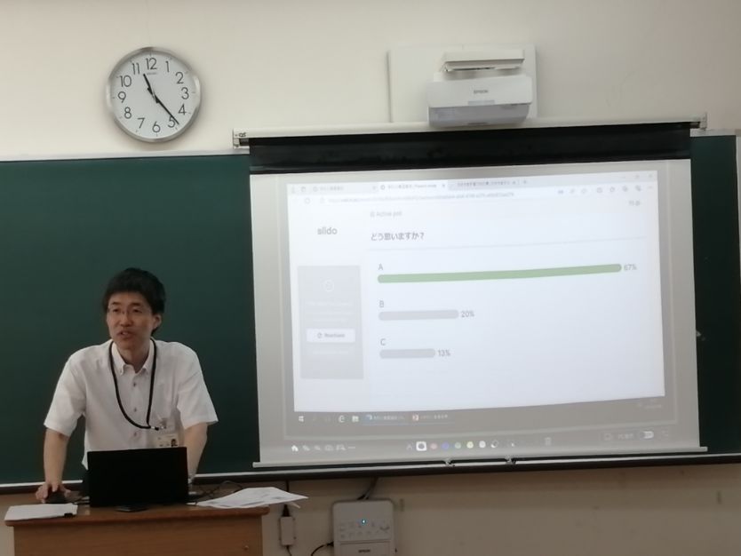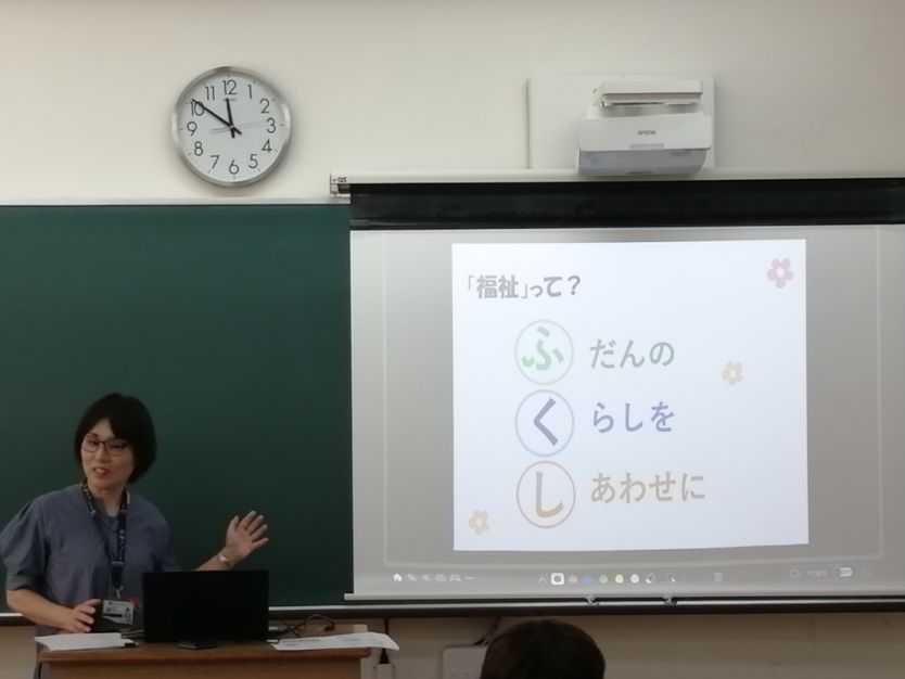本日、1年生の公民の授業において、「福祉」をテーマとした出前授業が行われました。講師としてお越しいただいたのは、「教育と福祉のカタリバ実行チーム」の皆さまで、県教育委員会生涯学習課や県共生社会推進部こども支援課などの関係機関によって構成されています。今回の授業では、「福祉とは何か?」をテーマに、現代社会が抱える課題に触れながら、困ったときに頼れる場所や、その繋がり方、相談の方法などについて、ロールプレイを交えた実践的な形でご説明いただきました。また、授業は一方的な講義形式ではなく、ICTを活用したアンケートや意見集約を取り入れ、生徒の意見に対してその場でコメントを返すなど、双方向型の工夫が施されていました。生徒たちは終始楽しそうに学び、主体的に授業に取り組んでいました。