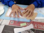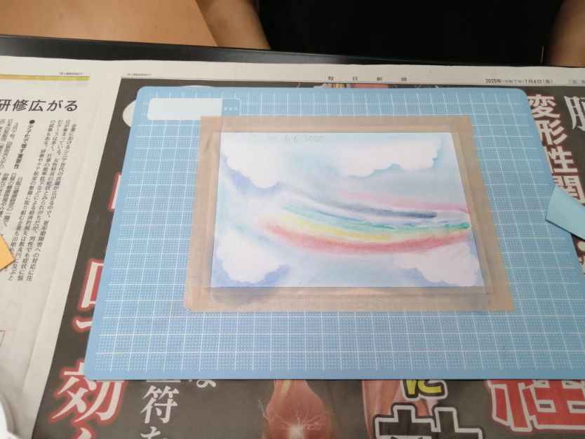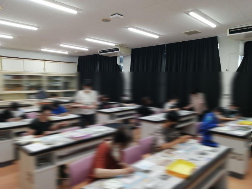 本日、イラスト部の活動として「パステルアート」に挑戦しました。今回は、日本福祉パステルアート協会インストラクターの亀井先生を講師にお迎えし、生徒と教員が一緒になって楽しく作品づくりに取り組みました。粉状にしたパステルを使い、型紙をあてて指でクルクルと描いていく作業に、生徒たちは真剣な表情で集中して取り組んでいました。