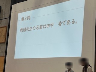 生徒会企画では、体育館で○×すごろくが行われました。学校にまつわるクイズが出題され、生徒の皆さんが一体となって盛り上がりました。