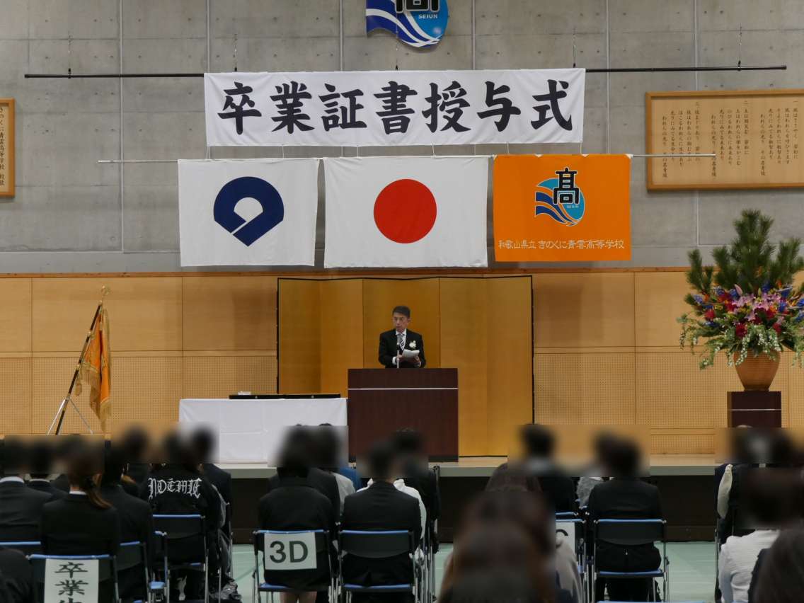 本日は、和歌山県立きのくに青雲高等学校通信制課程第12回卒業証書授与式が挙行されました。
