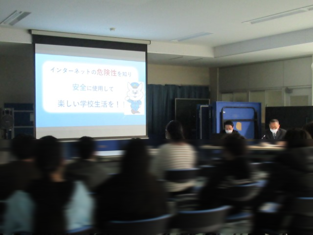 本日は非行防止教室として、和歌山県警察本部少年課の警察職員の方を講師にお迎えし、「犯罪と非行・特殊詐欺加担防止」や「スマートフォン・インターネットの危険性」をテーマにご講話いただきました。闇バイトやSNSをきっかけとした犯罪被害・加担の実例を交えながら、自分の生活や行動を振り返り、事件に巻き込まれないために注意すべき点や、犯罪にあたる行為、防犯に関する知識について、分かりやすく丁寧にお話しいただきました。